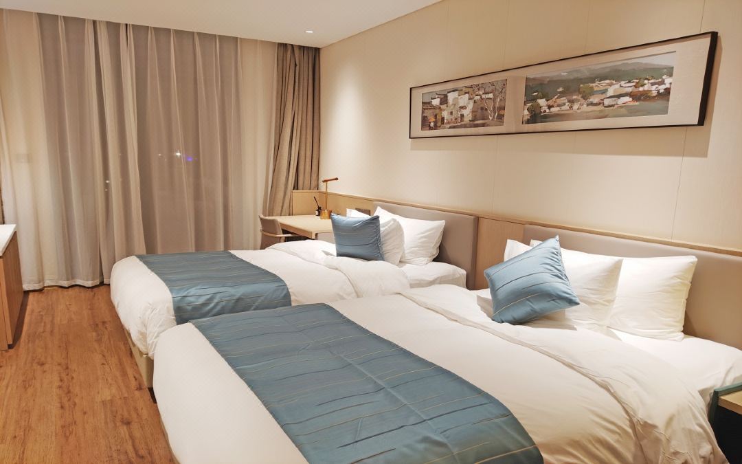 酒店客房寬敞、明亮、舒適,房間內(nèi)現(xiàn)代生活用品應(yīng)有盡有。